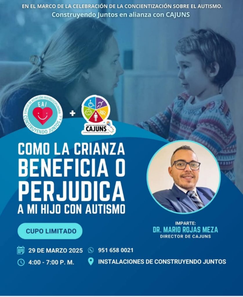 Oaxaca, Oax., 25 de marzo de 2025.- A propósito del Día Mundial de Concienciación sobre el Autismo, que se conmemora cada 2 de abril, en Oaxaca la asociación civil “Construyendo Juntos”, realizará dos talleres para padres y profesionistas enfocados en la atención a personas con esta condición de vida.