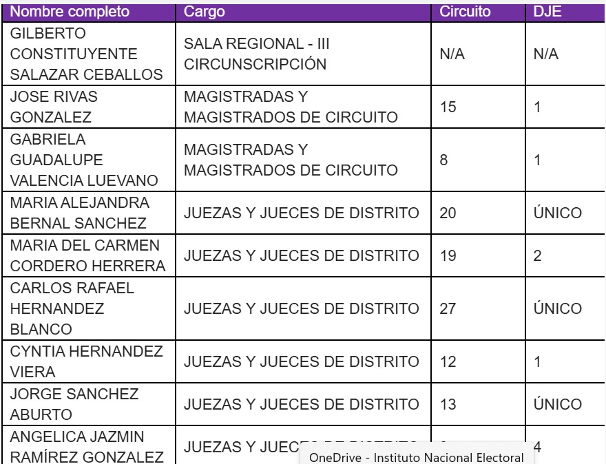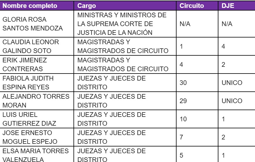 Las renuncias presentadas por incompatibilidad de las candidaturas del PEEPJF 2024-2025, son las siguientes: (Tabla 1 en imagen)