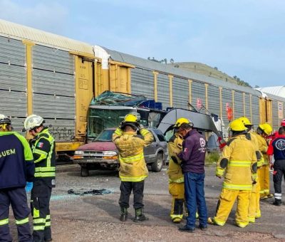 Oaxaca, Oax., 8 de septiembre de 2025.- Un tren impactó un autobús de pasajeros en el Estado de México la mañana de este lunes, lo que causó el saldo