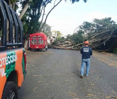 Oaxaca, Oax., 16 de marzo de 2026.- Los fuertes vientos y lluvia presentada en Oaxaca por el frente frío 41, derribaron árboles en varios lugares de